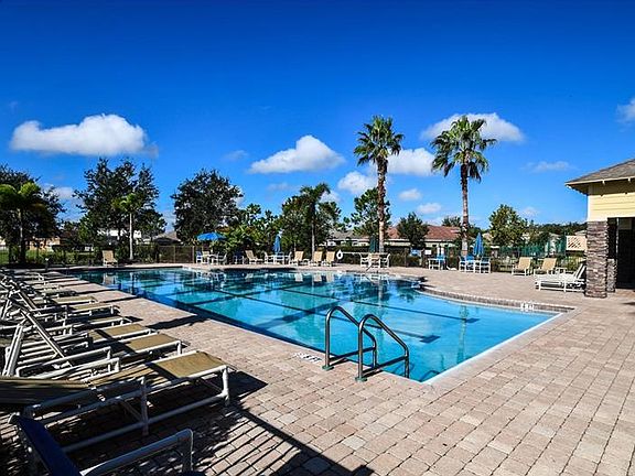 Welcome Home! This split floor plan offers a large kitchen and great room that over looks a custom paver brick patio with a fire pit! Located on an oversized lot with a pond view! Full of upgrades including: double insulation in ceiling, granite counter tops, 100 sf of attic storage, laminate flooring, water softener system and much more! CDD is included in annual taxes. Basic cable is included in HOA fee. Flood insurance is transferable and covered through 10/2018. The community has countless amenities and is perfect for families!