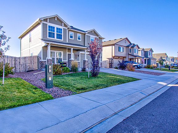 Welcome to your next home sweet home! This immaculate 3-bedroom, 3-bathroom residence, built in 2021, combines new condition with timeless comfort. Boasting an open floor plan, high vaulted ceilings, and a beautifully designed kitchen with granite countertops, this home is perfect for gatherings or simply enjoying daily life. The spacious master suite offers a private bath, while the second-floor loft adds extra versatility for a playroom, office, or entertainment area. A fully landscaped backyard with a 6' privacy fence and concrete patio creates a welcoming outdoor oasis for pets, kids, or weekend get-togethers. Conveniently located near Peterson SFB, Schriever SFB, and just 30 minutes from Fort Carson, you'll also find shopping and dining nearby. Ask about our special offer for active duty military families, discounts available for those who serve, with all applicants welcome! Don't miss out, this pristine home won't last long!