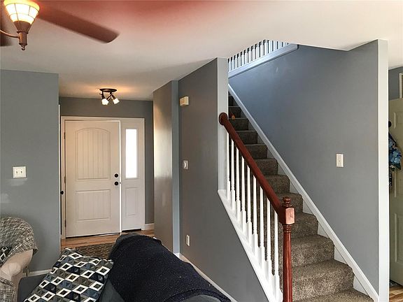 New Low Price! Free 1 yr. Warranty! Charming 2 story, lovingly updated for the past 10 years features a wrap around porch for quiet times or Family Fun! Step inside to gorgeous Maple floors from the entry through the Great Room, Kitchen/Dining and Powder! 3 Windows provide plenty of sunshine and Wood burning fireplace is great for these cool, spring time evenings.All new carpet on the steps and bedrooms on 2nd floor with another remodeled Bath! Giant bay window frames the Master Bedroom with room for extra large furniture. Lower level has a nice exercise space, home office and large laundry room with ample storage! Step out kitchen to a large wood deck with steps to yard and patio below! Beautiful fencing keeps the kids safely in sight and the lush woods provides privacy and shade in the warmest times of the year. Recent updates include New front door and sidelights, all new siding, roof, light fixtures, stone retaining walls and fresh paint! Friendly neighbors, great schools!