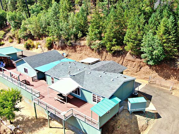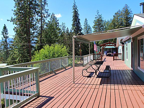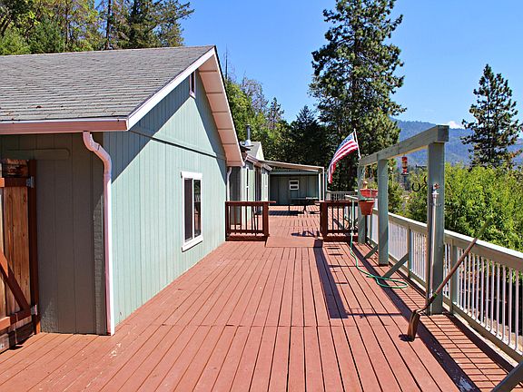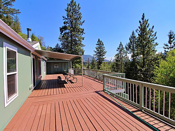 Here is a well-maintained home on N Applegate Rd with majestic valley views & views of the Applegate River. There is a massive 1500 sq/ft back deck for enjoying the outdoor serenity. Home has 3 bedrooms, 2 bathrooms, laundry room plus great pantry storage, open kitchen with bar counter, open front door entry room with vaulted tongue & groove ceiling, useful covered breezeway between the home & the garage, the garage has lots of built-in storage with doors that close, a detached 450 sq/ft building that could be used as a hobby/game room or a potential ADU, full RV hookups with 50amp power. The home offers a gated entry with a full wrap around paved driveway, chain-link fencing, 28x20 covered carport with additional attached covered work area & loft, with another covered boat/trailer building, & a covered area that was once used as a horse stall area with arena. Per the Seller the well is 20+ gpm, plus irrigation rights.