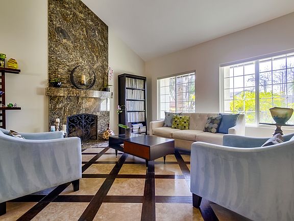 Seller will entertain offers between $849,900-$874,900. Extensively upgraded La Costa home with many green features, including solar panels, dual paned windows, artificial turf, drought tolerant landscaping, and charger for electric cars. No detail has been overlooked! This residence is beautifully detailed with travertine and hardwood floors throughout, an impressive floor to ceiling slab granite fireplace, stunning travertine staircase with wrought iron railing, and designer carpeting in the bedrooms. The kitchen has been tastefully remodeled with new cabinetry, granite countertops, and stainless steel appliances. An oversized pantry is accented with custom, wrought iron doors. The spacious master suite includes a huge walk-in closet, soaking tub, and double shower. Additional features include all remodeled bathrooms with natural stone accents, an upstairs loft with built-in cabinetry, speakers throughout the home and backyard, outdoor fireplace with TV connections, built-in BBQ, epoxy garage floor coating, overhead garage storage racks, and so much more!