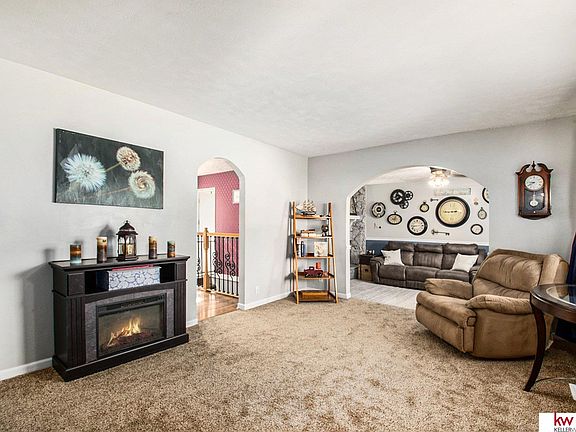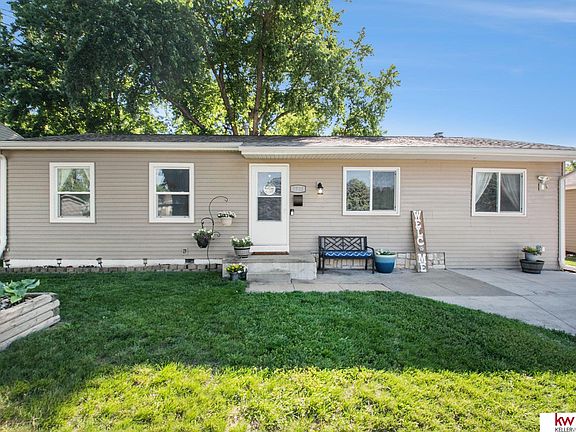 Welcome to this inviting 3-bedroom, 2-bath ranch home in the charming village of La Vista. Located across from La Vista Central Park and just a few blocks from the new and exciting shopping and entertainment at La Vista City Centre, this home features a new double-wide concrete driveway and a 6-foot privacy fence, along with a convenient storage shed. Inside, you'll find refreshing updates throughout, an eat-in kitchen, and a separate family room with a cozy fireplace on the main floor. Enjoy newer appliances and double pane replacement windows. The spacious finished basement includes an extra room, perfect for a home office or guest space. With a new roof in 2017, a newer washer/dryer in 2021, and a water filtration system, this home is move-in ready. (Please note that lower level 3/4 bath is set up in unfinished area)