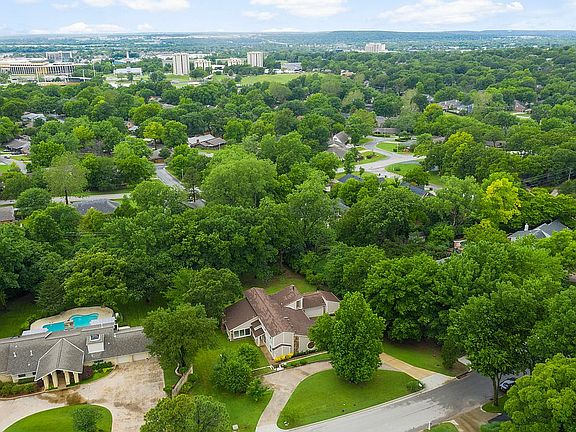 Spacious home packed with potential tucked in the rolling hills of South Tulsa's Timbercrest. With clean lines, soaring ceilings & abundant natural light, this home boasts a large living, dining, eat-in kitchen, vaulted den with second fireplace & bar, plus a master suite and two bedrooms on the main level. Fourth bedroom with ensuite bath and lofted flex space, game room with closet or fifth bedroom upstairs. Large lot with mature trees; circle drive, side entry garage + shop/storage and storm shelter.