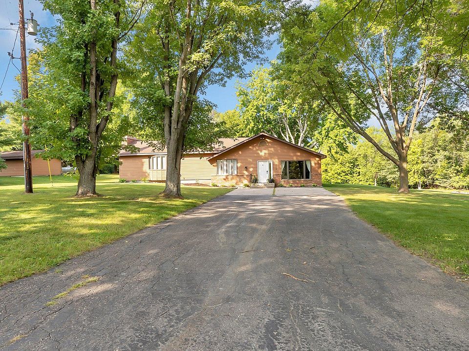 Welcome to 7733 Aetna Avenue NE! This secluded 1 story home is nestled in on 5 beautifully wooded acres with views of both Cedar and little Cedar lake. Plenty of storage and garage space with a 30'x50' insulated heated shop including a concrete floor, floor drain, water supply, and 9' door height and 10' sidewalls. There is also a 35'x55' pole shed that has power and lights 12' Door Height and fresh crushed granite, and a 19'x15' garage with power, concrete floor, and Insulation. This home boasts a massive master bedroom and huge walk in closet. The fully renovated interior is sure to please with an open concept and great area for entertaining. New cabinets, appliances, concrete countertops, flooring, lighting, water softener, washing machine, dryer, front door, and so much more! You will enjoy evenings on the patio watching amazing sunsets over the trees. Monticello school district and just minutes away from grocery stores and restaurants. Come take a look at this home today.