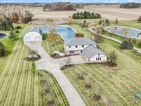 This remarkable home sits on 5 acres with a pond and a spacious 50 x 80 pole barn with loft. Plenty of space for everyone to enjoy some privacy. From the four bedrooms, the formal dining room and living room to the family room with fireplace, sunroom with skylights, den with built-ins and full finished basement. Double door pole barn with electricity, concrete floors and loft. The pond has a sandy beach. The concrete driveway is double car wide and nearly 300 ft long. Roof and Dryvitt, furnace AC, Pella windows approx 12-15 years old per seller. Basement has Ever-dry system.