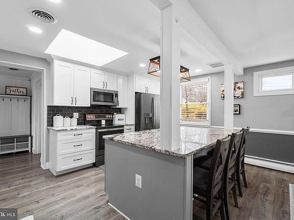 Tucked away in the heart of Sykesville, this charming 3-bedroom home offers warmth, character, and thoughtful updates throughout. Inside, Pergo vinyl plank flooring creates a seamless flow, while the cozy wood-burning fireplace with a brick hearth invites you to relax and unwind. The updated kitchen blends style and function with granite countertops, a tiled backsplash, and spacious island great for gathering around. The hall bath features a tiled floor and a tub-shower combination, designed for both convenience and comfort. Step outside to enjoy the screened-in porch, perfect for quiet mornings or evening retreats. The spacious yard is ideal for entertaining, complete with a gravel fire pit and two storage sheds for added convenience. A laundry room with washer and dryer, a one-car garage with a driveway and additional storage, and a peaceful Carroll County setting make this home a true gem. Experience the perfect balance of comfort and practicality—schedule your showing today!