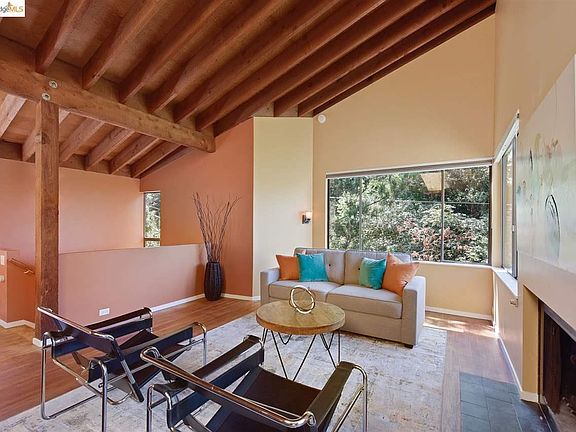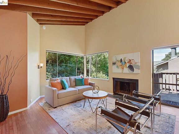 Super sweet "treehouse' tucked against a hillside in Claremont canyon. Upstairs is one bedroom and one bath with a wonderful open floor plan and stunning ceilings. Small deck off main area great for enjoying the verdant views. Picture windows abound. Downstairs is another bedroom and bathroom with its own entrance. High ceilings for ground floor. Small side yard and abundant hillside.