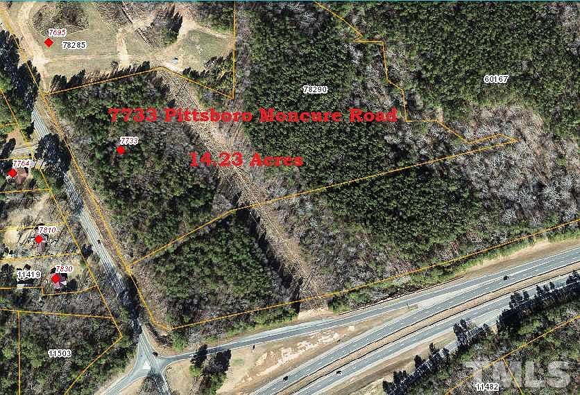 Prime location at intersection of HWY #1 & Moncure Pittsboro Rd. 14.23 Acres with "NB" Zoning "Neighborhood Business Activity" allows for a variety of business types. Great Road Frontage and visibility.