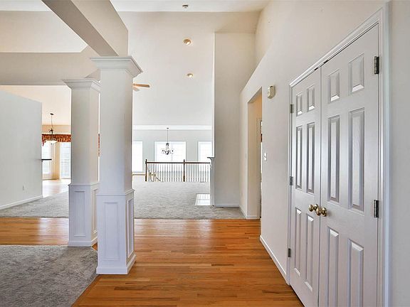 Come Home for the Holidays to Main Floor living, Soaring Ceilings, & Natural Light. Bright Kitchen w/Maple Cabs has Island & Walk-in Pantry, Breakfast Rm & Butler's Pantry. Main Flr Laundry leads to 3 Car Garage. Vaulted Great Room has Gas Fireplace & View from Wall of Windows. Private Master Suite has Bay Window View, Spa bath & Closet/Dressing Room. Airy, open plan includes Separate Dining Room. Divided floor plan has 2 bedrooms on opposite end of Main Floor. Perfect for multi-generational or large family! Downstairs is another “Home": Lots of Light, Media Rm, Recreation Rm & Kitchenette, 2 more Bedrooms & Full Bath (one bedroom used as office). Just outside, the Level treed & fenced yard has a lovely lake view. Over 1,000 sq ft of unfinished storage area in lower level. This quiet street is close to Winghaven shopping & dining and convenient to I-64 & 364. New water heater 8/2023, main HVAC replaced 2018. At under $110 per sq ft, you won’t find a better value!
