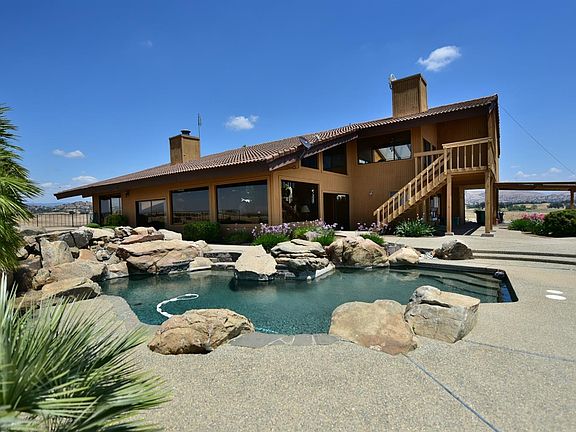 The Kindsvater Ranch is now available for purchase. Nestled near the base of the Sierra Nevada Foothills, this 85 acre parcel complete with a 2000 ft decomposed granite airstrip with the FAA designation (CL24), a 60x80 hangar/shop with 3-phase power, and a 3600 sq ft fantastic multi-level home is awaiting your occupancy. This property is located 15 minutes east of downtown Clovis and an hour south of the south entrance of Yosemite National Park. This well maintained home has fantastic views in all directions from any room. There are several outdoor patios for your entertainment needs and the pool is ready for your enjoyment. The solar is owned. There are 2 a/c unit, 1 3 ton and a 5 ton. There is a steam room/shower in the master bath. This home really shows quality construction. Beamed ceilings, and large picture windows abound. There are 3 wells on the property, 1 for the home (+/-75 gpm) another for the hanger, and yet another for the 40 acre pasture area livestock tank.