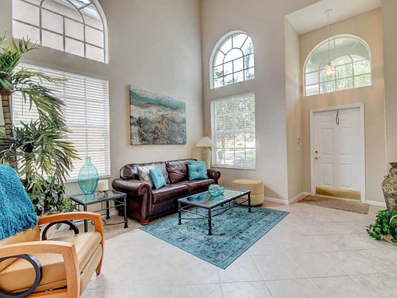 This Immaculate 2 story home is Light, Bright and Airy with Peaceful Lake Views and room for a Pool! Located in the desirable gated community of Smith Farm this Harvest Floorplan has 3 bedrooms, plus large open loft and 2.5 baths. Hurricane protection includes: Accordion shutters on second story and panels on lower level. Large neutral tile throughout living areas and light neutral new carpet on stairs, upstairs bedrooms and loft. Formal living room has two large arched windows and soaring ceilings. Kitchen features medium toned raised panel maple cabinetry with decorative rope trim, crown molding, some glass inserts, white appliances, pantry, snack bar, and is open to spacious dining and family room with upgraded French doors leading to open patio that has been extended with footers(more)
