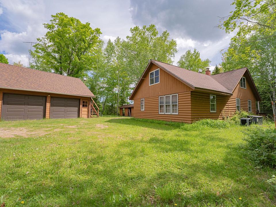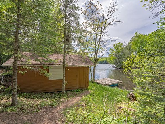 Gentle topography and peninsula privacy are the setting for this quality built 4BR, 2.5BA year round home, with a large detached garage and boathouse at waters edge. Well built lake home features a fieldstone fireplace, beamed ceilings throughout, butlers pantry, spacious bedrooms, and generous gathering areas both indoors and out. An addition in 1990 nicely blends extra living space and adds true four season functionality with a backup generator and A/C for those warm summer nights. One of the first properties developed on the lake, swim on one side of your peninsula and boat off the other, with a great dry boathouse just waiting for your plans to spring it to lakeside use! This land has been in the same family's hands for almost 100 years and is ready for a new generation of happy owners.