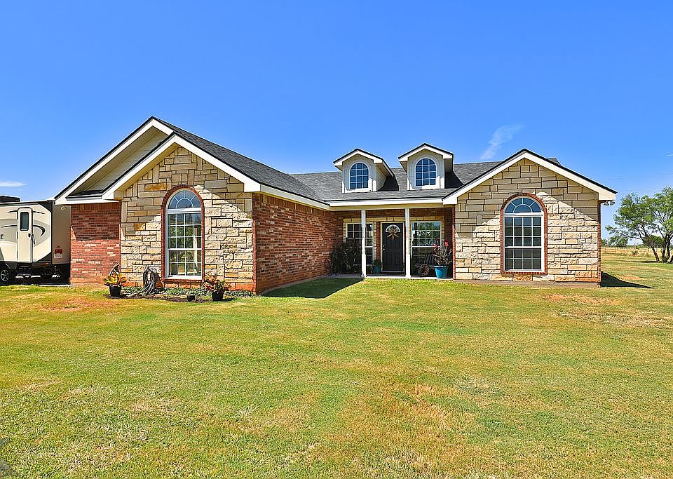 Out in the country past the city limit sign! Beautiful cleared acreage features large front and back yard with porches and additional covered outdoor living with views. Pool. Open floor plan with large windows and natural light. Oversized master bedroom and bath features walk-in closet and jetted tub. Choice of Abilene or Merkel schools. Cash or conventional only. No agents please. Private showings after June 1st. Call (325) 721-7957