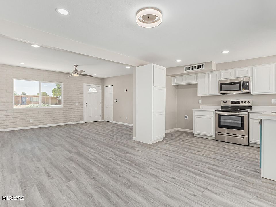 Seller has secured 5.625% (APR 6.379%) RateReserve through V.I.P. Mortgage, Inc. subject to buyer qualification--limited time offer! Contact LA or Sam Azares NMLS 629829 520-241-6689 for more details. updated property on a large cul-de-sac lot with no HOA! This 3-bedroom home welcomes you with a serene living room featuring a soothing palette, recessed lighting, and attractive wood-look flooring for a timeless appeal. The upgraded eat-in kitchen boasts sleek quartz counters, crisp white cabinetry, and stainless steel appliances for an enjoyable cooking experience. The primary bedroom offers an attached bathroom for added privacy. Spend relaxing afternoons in the lovely backyard, complete with a covered patio, a storage shed, and breathtaking mountain views for a picturesque backdrop.