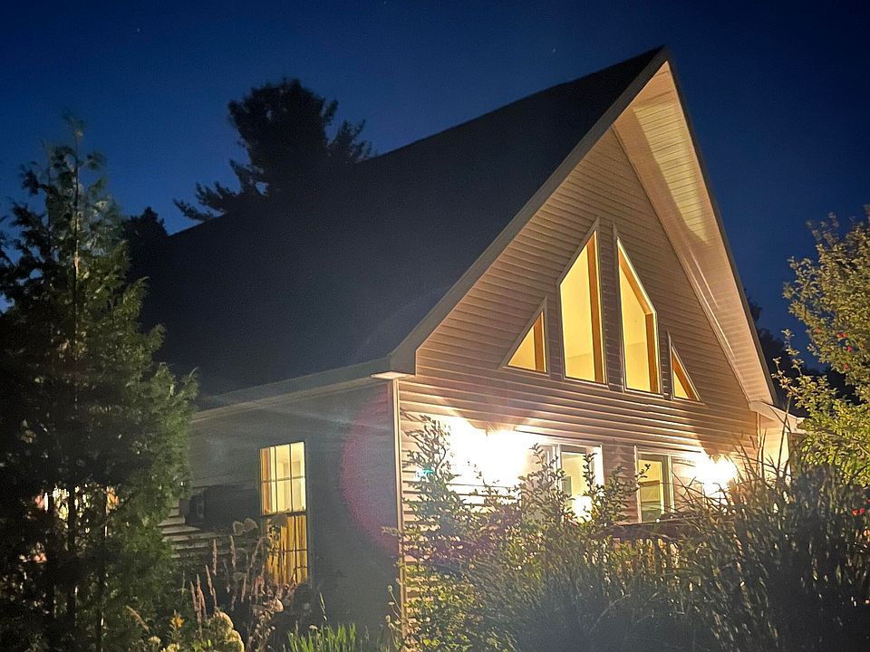 This spacious home is perfect for the year round resident or for a summer retreat! The large open concept living room has high vaulted ceilings along with a natural gas stove to warm you up during the cold winter months. Enjoy a sunny afternoon in the Sunroom which allows views of the multiple perennial flower gardens that surround the house.. The primary bedroom is located on the mail level with a walk-in closet and a private bathroom. New carpeting has recently been installed. This home has a huge loft bedroom upstairs which can easily be divided to add a third bedroom.