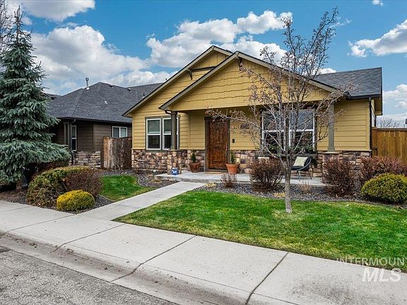 Meticulously maintained single-level, Craftsman-inspired bungalow. Originally a Parade and model home, the thoughtful great room design showcases beautiful wide-plank hickory floors throughout the main living areas, tile floors in the bathrooms and laundry room, contemporary lighting, a cozy corner gas fireplace w stacked slate surround, and an in-ceiling SONOS sound system. The kitchen is the heart of the home and the perfect place for friends and family to gather. The modern layout features ample workspace, stainless steel appliances (including the refrigerator), a large island w inviting breakfast bar, slab granite countertops, tumbled stone backsplash, plentiful storage, and a fabulous built-in coffee/wine bar w beverage refrigerator and wine rack. The primary suite is complete w a dual vanity and spacious walk-in closet. ADT security system, low maintenance, close to foothill trails, and easy to lock and leave. This home is move in ready; a perfect blend of comfort, desirable location and a 3-CAR GARAGE.