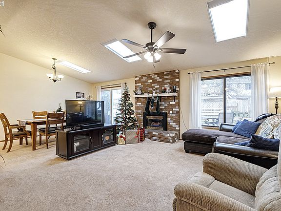 Ranch style home with gorgeous landscaped yard. Featuring large deck with bench seating, flagstone patio, hot tub and garden. Home features open floor plan with vaulted living room, skylights and fireplace. Large kitchen with skylight and SS appliances. Master bedroom suite with walk-in closet. Built in storage in garage. Near to green-way, running paths, creek, parks, playground and tennis courts. New Roof 2021. Kitchen modeled. Must see home.