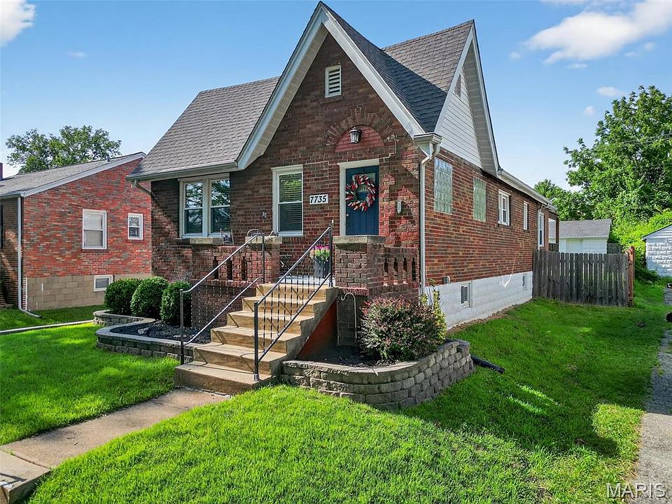 Welcome to this immaculate brick Richmond Heights home! With 1930s charm and timeless elegance starting with the beautiful hardwood floors & built in bookcases, wainscoting and amazing upgrades throughout. The living room has glass block windows, recessed lighting, 8” baseboards, and a charming arched doorway that leads into the bedroom and bathroom hallway. Past the dining room the kitchen has slab-granite countertops, 42” cabinets, stainless gas stove, & coffee bar. Mud room off the back of the kitchen leads to the back porch. Charming bedrooms include features such as a bay window, dual closets & built in shelving. The lower level family room with recessed lighting, a ton of storage area and walk-up that leads to your private patio. Amazing bathroom has ceramic tile walk-in shower with bench, updated vanity & modern lighting. This home has a architectural roof, newer HVAC, and vinyl windows. Parking galore with a long driveway and detached 2 car garage -- this home has room for everyone!