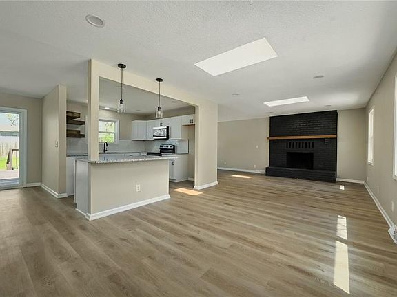 Updated Ranch home!! 3 bed 2 bath. Walk into the large open concept with a kitchen/living/dining room combo. Enjoy the natural light beaming in from the skylights in your living room. Fully updated kitchen with cabinetry, countertops, and SS appliances. Get cozy at the fireplace in the living room. 1 bath is upstairs and one is downstairs. Both fully updated with tiled showers/vanity/flooring and more. Fresh paint throughout. Full basement. Large deck out back for outdoor entertainment/grilling off the dining room. Patio as well. 2 sheds for lawn maintenance storage. Great sized Lot. This one is a must see!!