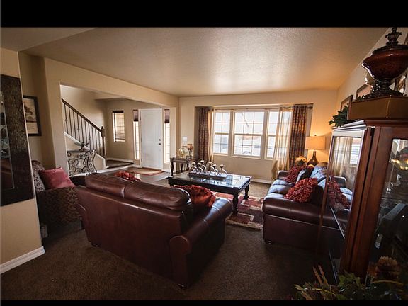 Beautiful 4 bedroom home, 31/2 bath, 3 car garage! Master upstairs with 5 peice bath with oil rubbed bronze,walk in closet and speakers in the master. 2 additional bedrooms upstairs along with full bathroom with double vanity. A Juliet that overlooks the family room with 20 ft ceilings. In the kitchen cherry cabinets and granite counters and hardwood throughout the entry, kitchen, and formal dining room. Upon entry there is a sitting room that opens up to the formal dining. There are speakers in the kitchen and four outdoor speaker to enjoy the huge backyard. Floor to ceiling stone in the family room surrounding the fireplace and entertainment., and a half a bath and laundry on the main level. Huge 4th bedroom in the basement along with another full bathing walk in closet. High 9 ft ceilings in the basement and surround sound. Along with wet bar equipped to have a tv for extra entertainment. Tenant responsible for utilities