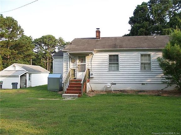 "AS IS WHERE IS" sale by Estate Executor. Priced thousands under current assessment. Wood sided one story mid-century 2 bedroom dwelling on roadside rural residential site (zoned A-1) at Toano. Side porch converted to a small paneled den. Hardwood floors in LR, DR, and 2 bedrooms. Oil hot water boiler system for heat & domestic hot water. Furnace located in stand-up crawl space. It is noted there is no crawl space insulation. Attic access is a small scuttle in the rear bedroom closet ceiling and has not been viewed by listing agent. Large detached workshop building to side of dwelling has lights and dryer connection. Functional well used for exterior faucet only. Domestic water supply is from pubic source.