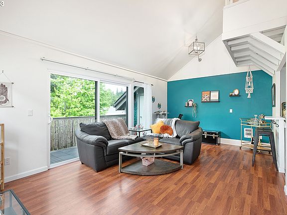 This sweet condo lives large with awesome vaulted ceilings that fill the entire living space with natural light. The main level bedroom has high ceilings, an attached bathroom and laundry within. The stairs will take you up to a loft that could be a massive closet/dressing room, an office, guest space - you name it! You'll love no upper/lower neighbors at this coveted end unit within a tree-filled complex boasting maximum tranquility yet with many amenities and convenient access to St. Vincents, downtown PDX, Beaverton, Nike, Intel, freeways. Pool, tennis, rec facilities. Extra efficient with newer ceiling insulation New 2020: updated bathroom/plumbing, electrical panel, baseboard/wall heaters. New 2023: windows, kitchen sink/faucet, dishwasher. Welcome Home!