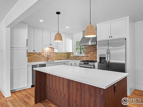 Super stylish and impeccably maintained, this one-of-a-kind home sits on a sunny corner lot with cool city views and curb appeal to match. It's truly move-in ready, featuring 4 bedrooms (including a non-conforming bedroom in the finished basement), pristine wood floors, updated bathrooms, central AC, and generous storage. The standout kitchen includes a large island, quartz countertops, rich wood and white cabinetry, and high-end stainless appliances-all included, along with the washer and dryer. Brick accents and a custom metal railing add warmth and character to the space.The finished basement adds valuable extra living space and includes a cozy wood-burning stove, laundry area, and ample room for storage or hobbies as well as 2 of the 4 bedrooms. Step outside and picture morning coffee on the covered patio, weekend barbecues under the trees, and space to garden, play, or just unwind in the fully fenced and beautiful mature yard. With a full sprinkler system and 3 garage spaces-including an attached 1-car and separate 2-car side-load-you've got space and convenience to match the charm. Thoughtfully updated and full of character, this is the kind of home you'll settle into easily and love for years to come.