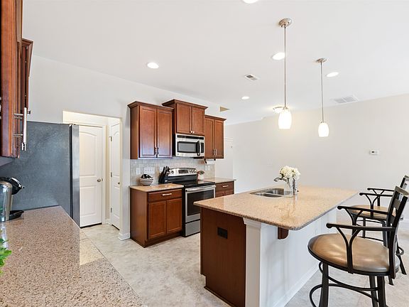This move in ready 3 bedroom, 2.5 bath townhome boasts over 1700 sq ft of living space freshly painted! You are greeted by an open and bright living space, featuring hardwoods and new carpet through out! Beautiful kitchen with large granite island, pantry and lots of counter and cabinet space. Primary features a beautiful window nook and large walk in closet. The primary bath includes a double vanity, large tub, separate shower and water closet. Just down the hall you will find 2 additional large bedrooms w/ plenty of closet space as well as a laundry room. This home offers easy access to Hwy 540, nearby shopping, dining, and entertainment options. Enjoy time outdoor on your private back patio or at the neighborhood pool.