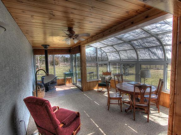 This hidden estate is nestled amongst beautiful trees and flower gardens during the Spring, Summer, and Fall. A sweet little pond is just a short walk behind the home. Property is perfect for the outdoor lover with a 30' x 40' pole barn featuring concrete floor and electric, RV storage, and shop area. Home is neatly done with a new roof in 2013 and updated with care and pride. Some new mechanicals include: American Standard furnace with heat pump, and a Culligan water softening system all done in 2013. This home is not your ordinary split level, as it boasts an amazing 4 season sun room with wood stove as your dining area with a beautiful view of the birds and flowers. The user friendly kitchen has plenty of cupboard space and includes a breakfast bar.
