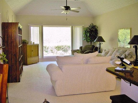 Newly painted throughout with new berber carpet and tile floors. Cathedral and trey ceilings throughout this split plan, open concept one-owner home on the Maple Ridge Golf Course. Glassed-in sunroom with wood beam ceiling. Very large addition on Master Suite built in 2005. Hard surface counter tops in kitchen that opens to Great Room with view of 7th hole. Sprinkler system, thermal vertical blinds, HE toilets, and 2 AC units. Lots of custom built storage in attic, garage, and utility room.