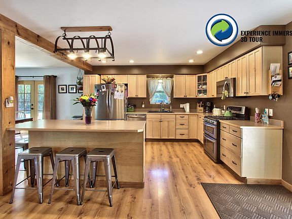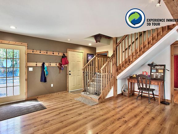 3D Immersive Virtual Tour! Modern farmhouse style home at the end of a cul-de-sac and private runway access for the pilot in the family. From the landscaped drive to the covered country styled wrapping front porch to the finishing touches of shutters, enclosed soffits and matching shed, this home emanates a relaxed style of life. Inside is warm literally-with in floor heat and also in its distinct layout and design. The rich looking floors, the simple shaker design cabinet style that does not distract from the spacious kitchen and breakfast bar and the wood beams all lend to the modern rustic appeal. The charm continues with the real wood trim and accents throughout the home. The appliances are upgraded stainless and the lighting is plentiful with recessed lights in the kitchen. The lower level has the main living area, the kitchen, dining, one bedroom and one bath. Upstairs features the owners suite, two more bedrooms and another bath. There is also a family room on the second level.