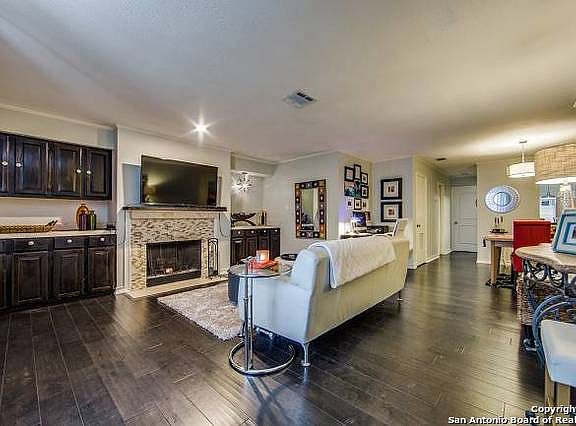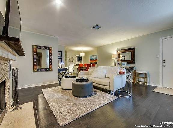 Charming updated ground floor condo. Darling window seat in Living Room. Bedroom and walk-in closet are spacious with custom window treatments. Oversized shower; custom double vanities and lighting fixtures. Secure gated condo community with secluded pool and lovely grounds. Must see to appreciate. Unit is a short drive to Oak Hill CC, Medical Center, Loop 410 and IH10. Located next to Denman Estate Park. Investors welcome.