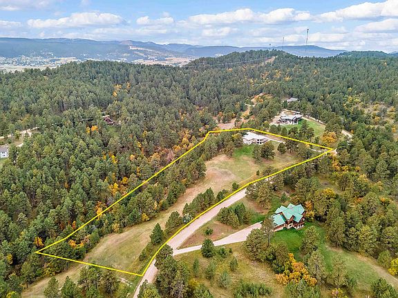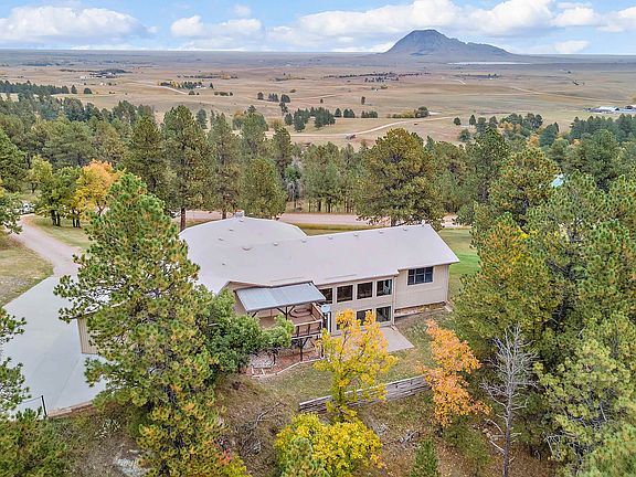 Listed by Sarah Peterka Keller Williams Realty-Black Hills Spearfish 605-661-2802. Rare find in the trees just outside of Sturgis! This amazing 7 acre property is nestled in the pines and offers stunning views of Bear Butte. The layout and window placement allows for ultimate views. This custom, one-owner home is bursting with character! Wood beams accentuating the ceilings, custom built-in cabinetry, Quartz countertops, circular fireplace and passive solar features are sure to capture your eyes. With 5 bedrooms, 3 baths, and an over-sized 3-car garage, there's ample space. The main level includes 3 bedrooms including the primary and laundry. The basement includes 2 bedrooms, workshop area, 2nd kitchen or bar area and additional living areas. There's ample space allowing for opportunity to make your own and provides the ultimate entertaining experience. Don't miss your chance to find a home with this much care and size for this great price!