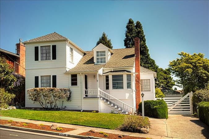 7738 Stockton Avenue is a spacious two-story home in the El Cerrito hills with fabulous views of the Golden Gate Bridge and San Francisco bay. Sited on a huge 11,275 square foot parklike lot with mature trees, level lawn area for play, and a wheelchair friendly wooden path to the detached studio. Spacious sun-filled living room with fireplace and large windows to enjoy the views. Open dining room and family room with a second fireplace, opens to the large deck and spectacular yard beyond. The wonderful indoor/outdoor flow is perfect for entertaining. Beautiful hardwood floors throughout. A comfortable floor plan with four bedrooms, two full bathrooms. Sunny kitchen with breakfast nook and a cute corner window sill for your herbs. Detached garage with workshop. Very conveniently located just blocks to shops, El Cerrito Natural Grocery is right down the hill, numerous parks, schools (the house is in the Kensington Hilltop School area), BART and freeway access. Open Sunday April 13th & 20th from 2-5PM Four bedrooms Two bathroomsSan Francisco & GG Bridge viewsLiving room w/fireplace Hardwood floors throughout Open dining room/family room w/fireplaceBright eat-in kitchen Washer/dryer closet Detached garage w/workshopGorgeous landscaped backyardLarge deck for entertainingKensington Hilltop School districtHouse: 1,942 sf (per public record)Lot: 11,275 sf (per public record)Year built: 1940
