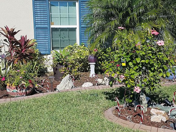 Solar tube lighting saves energy. Gutters, curbing and drop down ladder to flooring in attic. Vinyl fenced private back yard, bond paid off. Ceramic plank flooring. Double size lanai