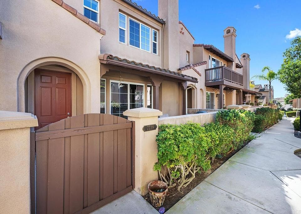 Welcome to the Villas de La Costa. Move-in ready three bedroom, 2.5 bath, two -story townhome with an attached 2 car garage. California Spanish design with gated courtyard entrance and large front patio which is perfect for entertaining. Nice open floor plan with high ceilings and a corner fireplace. New paint, new carpet, new laminate flooring in kitchen, new garage door opener, and a new ceiling fan in Master bedroom. Large primary suite with generous size closet, large tub & tile shower and dual sinks. Recessed lighting throughout plus a convenient upstairs laundry room. Home is located in the Encinitas School District and is walking distance to La Costa Heights Elementary School. Located near La Costa Town Square Center with shopping & restaurants. Plus recreational hiking trails nearby and only a short distance to the beach and beautiful blue Pacific Ocean.
