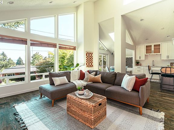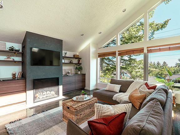 This home has everything you're looking for, including breathtaking Mount Hood views. The open floor plan is bathed in natural light, thanks to large windows that make the space feel expansive—perfect for entertaining. A sleek gas fireplace, framed by custom built-in shelving, anchors the living room. The kitchen is a chef's dream, boasting quartz countertops, stainless steel appliances, double ovens, and double sinks—ideal for cooking and hosting with ease. Hardwood floors flow through the main living areas, adding warmth and elegance. Upstairs, you'll find a versatile loft with soaring views, perfect for a home office or creative space, complete with a handy storage closet. The primary suite is a peaceful retreat, featuring dual sinks, generous closet space, and a sliding door that opens to a private, low-maintenance backyard. Downstairs, the spacious family room offers endless possibilities, whether it's a home theater, rec room, or game night hub—complete with its own bathroom. Located in a prime spot near Portland's best, this home combines stunning views, thoughtful upgrades, and effortless access to local amenities. [Home Energy Score = 6. HES Report at https://rpt.greenbuildingregistry.com/hes/OR10007314]