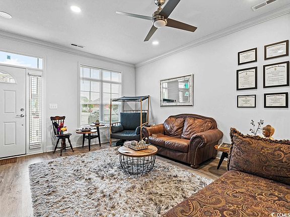 Welcome to 773-A Moen Place, a charming and cozy townhouse located in the highly desirable area of Highmarket in Market Common! This delightful end unit built in 2019 offers a comfortable living space, luxury vinyl plank flooring, modern amenities, and a amazing location, making it an ideal choice for those seeking a relaxed yet connected lifestyle. Upon entering, you'll be welcomed into an open and inviting floor plan. The living area is designed to create a warm and cozy atmosphere, perfect for unwinding after a busy day. Natural light streams through the windows, enhancing the cheerful ambiance. The kitchen is efficiently designed, featuring stainless steel appliances, granite countertops and white cabinetry. It's an ideal setup for preparing meals and enjoying casual dining. Adjacent to the kitchen, you'll find a dining area that offers a comfortable space for sharing meals and making memories with loved ones. The primary bedroom is a peaceful retreat, providing a haven for relaxation. It features a well-sized layout, a private en-suite bathroom, and ample closet space. The additional bedroom offer versatility, making it suitable for guests, a home office, or hobbies. Outside, you'll discover a cozy patio, perfect for enjoying outdoor moments and soaking in the pleasant Myrtle Beach weather. This space can be adorned with plants and furnishings to create your own personal oasis. Walk to all the restaurants and shops Market Common has to offer, enjoy a walk around the wonderful lake or bike to the beach, the options are endless. Don't miss this amazing opportunity and schedule your private showing today!