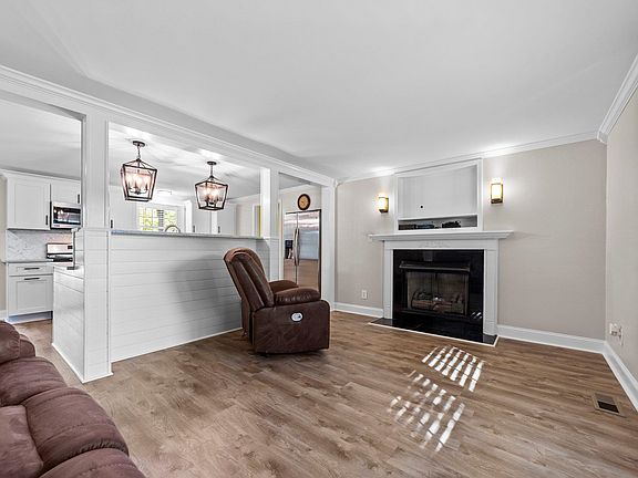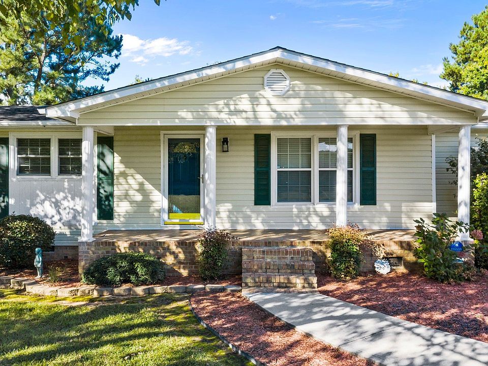 Pristine 3BR/2BA w/office. Ranch on .77 Acres! New Luxury Vinyl Plank flooring. Open Kitchen, LR, DR floor plan. Newly renovated kitchen features quartz, new fixtures, island & soft close white shaker cabinets. Split bedroom plan, Large owner's suite w/spa has a deep soaking tub, sep. shower, & Bluetooth music system. 2 additional large BR's. Office could be 4th BR. Lg. Rear covered deck. Giant workshop/storage in fenced backyard. 3 car carport. Close to shopping, dining & Raleigh- no HOA or City Taxes!