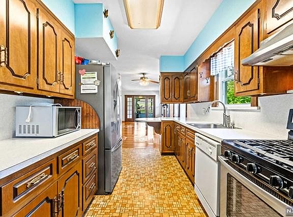 It's time to pass the torch of this estate sale colonial home that is surrounded by homes of greater value in the highly desirable Borough of Franklin Lakes. Now is an amazing time to make this home yours. Bring your ideas, your wishes, your designers to add your taste and style. The hardwood floored main level has a four-season room, dining area and living room. A full bath is steps from the first-floor bedroom that could be used as an office. The elongated galley kitchen with SS appliances opens up to the oversized wrap-around deck. The upper level with 2 bedrooms, a full bath and generous master bedroom lends itself to countless opportunities. As you enter the basement a large partially finished room presently used for storage opens to the backyard. A private finished bonus room along with the workshop/utility/laundry room completes the lower level. Being sold AS IS.