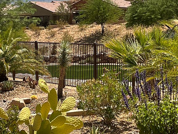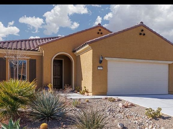Beautiful spacious 2 bedroom, 2 bath home + office/den with fully fenced and gated yard, extensive tile flooring, new carpet in bedrooms, mountain views and split unit for A/C in garage! Sun City Mesquite Sanctuary model with en-suite and large walk-in closet in main bedroom. 2 foot extended garage and 2 foot extended dining area. Built in 2018, includes granite countertops, washer/dryer, refridgerator, raised dishwasher, garbage disposal, water softener and R/O drinking water system.