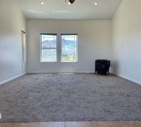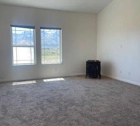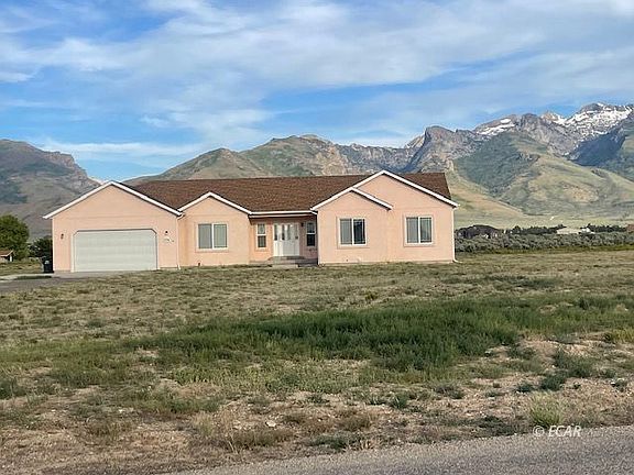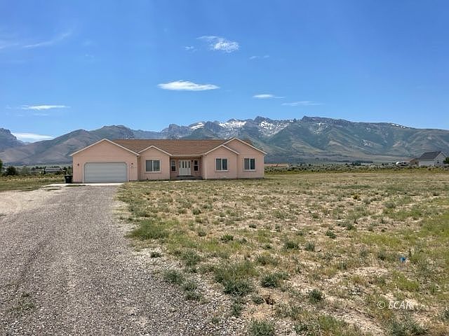 The views are stunning from this rare find of a 5 acres parcel with the Ruby Mountains towering over the backyard. All 5 acres are flat, usable land. As you approach this home with stucco exterior, you will find yourself at the covered front entrance. The entrance has tiled floors that lead to all the bedrooms in one direction and to the large dining / kitchen in the opposite direction. This home features 3 LARGE BEDROOMS all with new carpet. The 2 secondary rooms are nearly as large as the master bedroom. The master bedroom has a walk-in closet with shelving, windows that face the Rubies plus a door that leads to a concrete patio where you could create a sitting area or even a hot tub pad. This area was designated PERFECTLY for a sunny morning coffee and a shady sanctuary the afternoon. The master bathroom has a corner soaker tub, separate shower stall and double vanities. The living room has a ceramic surfaced pellet stove and windows that also take in the Ruby Views. Kitchen is large with lots of workspace on solid surface countertop and ample amounts of cabinet storage. Home also features central air and two water heaters.