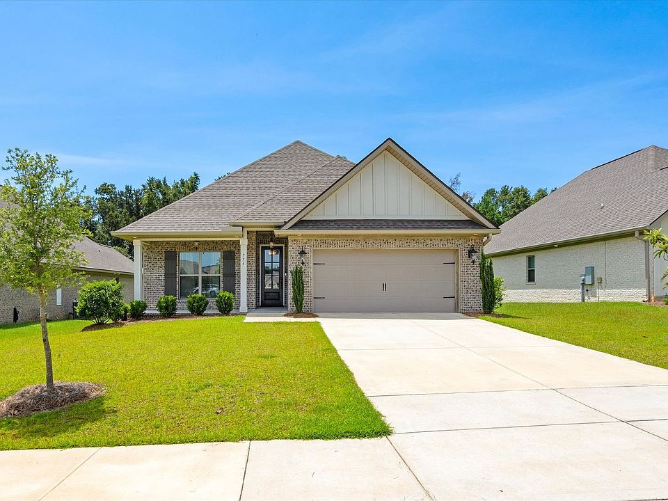 Available early July. This Truland Home offers the 3 bedroom 2 bath Lexington plan and features soaring 12' ceilings, and oversized 16 X 12 covered back porch: the perfect setting for your outdoor living area. Well-appointed upgrades such as hardwood floors in the main living areas including the kitchen, breakfast room, hallways & the master bedroom! Laundry room with free standing laundry sink. Stainless Steel appliances, never runout of hot water with a tankless water heater. Custom crown molding & trim work around windows & doors. The master bathroom features dual sinks, linen closet and walk in shower- complete with shower seat & separate hand sprayer. The location of this subdivision is excellent, located just minutes from Downtown Fairhope, with nearby recreational activities like golfing and shopping.