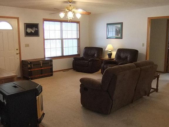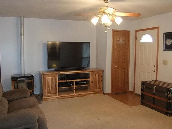 Lovely 3BR, 2BA home on 3 ac., this is what you've been looking for!! Located 3.5 miles from Bolivar in a private wooded setting on blacktop.All electric home offers so much--An open living plan that is bright and airy. The pellet stove makes winter so cozy! The kitchen has lots of cabinets with pantry and pull-out shelves.French doors open onto a charming screened porch to enjoy the outdoors. The master suite with big walk-in closet is spacious and offers french door access to the screened porch. Master bath features private water closet, lots of linen storage, double sinks and vanity area, walk-in shower with seat. 2 car att. garage opens into utility where you can clean up at sink before entering. Outside you'll love the 30x40 shop bldg w/woodstove and cute chicken coop! Security gate