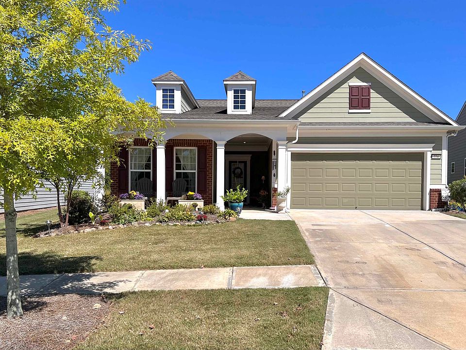 Very popular 55+ resort style community offers a sought after "Abbeyville" plan in the Dogwood Collection, which showcases the beloved rocking chair front porch and brick accents. Only 3 1/2 years old, this gem was built in 2019 on a premium private plateau overlooking a natural backdrop and a winding creek at the bottom of the hill. The livable floor plan features an upgraded "Chef''s" Kitchen and Dining Area open to the spacious Great Room with a cornered stone fireplace (equipped with gas logs). The all white kitchen package offers countertop height dishwasher (not raised), extended island, stainless steel appliances, farmhouse sink and more. This floor plan provides 2 bedrooms and 2 baths configured in a split plan allowing for ultimate privacy, plus a "flex" room with a wall of aftermarket cabinets with glass doors. Extra relaxing spaces available in the finished sunroom, the screened lanai and the poured patio (with a gas line stubbed in for grill). This home is packed with upgraded features including the 4' garage extension, permanent stairs to the floored attic, built-in drop zone, full yard irrigation system, decorative fencing in backyard and so much more (see full list in docs). Sunny days are ahead in Sun City Peachtree, a welcoming place full of leisurely activities, sports and clubs, which are all set in a lavishly landscaped gated community. Come see for yourself today!