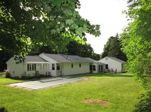 A DELIGHTFUL HOME! Spacious & meticulous one floor living in this Vinyl sided Ranch set on .80 ACRE lot on beautiful country road. Enjoy the lovely vistas from the dining nook or sit out on the Gazebo & watch nature around you. Many improvements include 2011-2012: high efficiency heating system, Hot Water TK, Roth oil tank, Roof, attic insulation, some windows & 2 sliders,& gutters. Gorgeous baths w/ corian & stone vanities, soaking tub, and separate showers. 2 fireplaces, vaulted/Cathedral ceilings, and well appointed kitchen w/ butcher block top, Jenn Air cooktop/Convection, corian & ceramic finishes, & Oak Craftmaid cabinets. Washer, Dryer & Refrigerator are negotiable.Two finished basement rooms and a cedar closet. Anderson & Harvey windows. High efficiency heating/Hot water system averaged only 350 Gal oil/Year for heat & Hot water!!