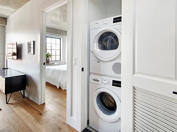 Best Priced & Gorgeous! Rent stabilized 1 bedroom with an open kitchen, great closet space, and an in-unit Bosch washer & dryer. The custom kitchen features Caesar stone countertops, modern stainless-steel appliance package, full-sized dishwasher, herringbone white ceramic tile backsplash, oil rubbed bronze faucet, Kohler sink and soft-close cabinets. The spa-like bathrooms are outfitted with a deep walnut vanity, Caesar stone backsplash, Moen faucets with Kohler sinks and toilets, and white herringbone ceramic tile walls. Each room has individually controlled digital thermostats and soundproof windows. Amenities offer the utmost in convenience: fully-furnished roof deck with two grilling stations, wet bars, private dining stations, lounge chairs and outdoor shower; resident fitness center; workspace lobby lounge with free WiFi; Butterfly MX Security and Intercom system; green backyard garden; private storage cages, parking garage and bike storage available. Pet and guarantors are welcome. Some restrictions apply. Pictures depict typical finishes in the building and might not be of an actual unit. Pictures depict typical finishes in the building and might not be of an actual unit. Rent stabilized. 2 year lease 4261.