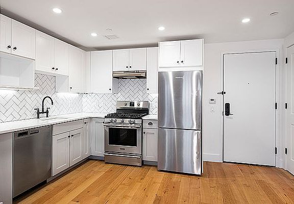 Large 2 bedroom 2 bathroom unit with the industrial-chic oversized windows, open kitchen, great closet space, and an in-unit Bosch washer & dryer. The custom kitchen features Caesar stone countertops, modern stainless-steel appliance package, full-sized dishwasher, herringbone white ceramic tile backsplash, oil rubbed bronze faucet, Kohler sink and soft-close cabinets. The spa-like bathrooms are outfitted with a deep walnut vanity, Caesar stone backsplash, Moen faucets with Kohler sinks and toilets, and white herringbone ceramic tile walls. Each room has individually controlled digital thermostats and soundproof windows. Amenities offer the utmost in convenience: fully-furnished roof deck with two grilling stations, wet bars, private dining stations, lounge chairs and outdoor shower; resident fitness center; workspace lobby lounge with free WiFi; Butterfly MX Security and Intercom system; green backyard garden; private storage cages, parking garage and bike storage also avail. Pets up to 50lbs some restrictions apply. Pictures depict typical finishes in the building and might not be of an actual unit. This apt is rent stabilized.
