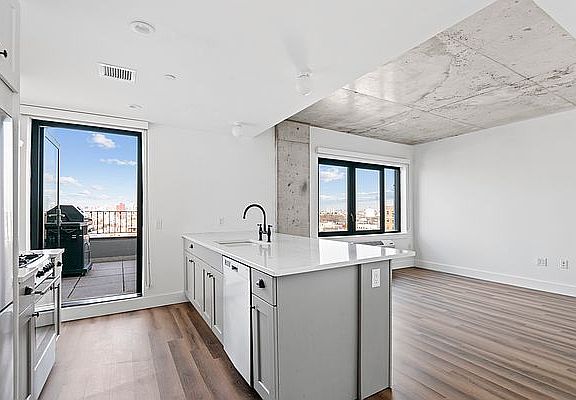 PRIVATE TERRACE WITH GRILL & VIEWS IN THIS PENTHOUSE 2BED! Live life Grand in this 2 Bedroom 2 Bath stunner. The custom kitchen features Caesar stone countertops, modern stainless-steel appliance package, full-sized dishwasher, herringbone white ceramic tile backsplash, oil rubbed bronze faucet, Kohler sink and soft-close cabinets. Washer Dryer in the unit. The spa-like bathrooms are outfitted with a deep walnut vanity, Caesar stone backsplash, Moen faucets with Kohler sinks and toilets, and white herringbone ceramic tile walls. Each room has individually controlled digital thermostats and soundproof windows. Amenities offer the utmost in convenience: fully-furnished roof deck with two grilling stations, wet bars, private dining stations, lounge chairs and outdoor shower; resident fitness center; workspace lobby lounge with free WiFi; Butterfly MX Security and Intercom system; green backyard garden; private storage cages, parking garage and bike storage available. . Pets permitted. Some restrictions apply. Photos depict similar finishes and may not be of actual unit. Rent stabilized 2 year lease offered at $5370.75