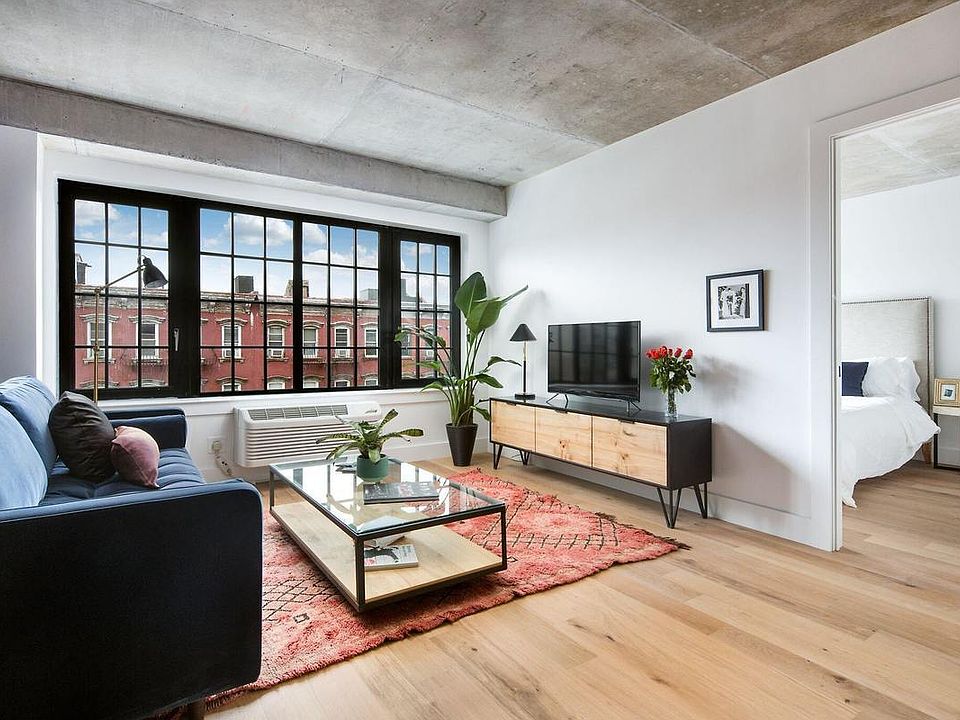 Huge alcove studio, with amazing views, open kitchen, great closet space, and an in-unit Bosch washer & dryer. The custom kitchen features Caesar stone countertops, modern stainless-steel appliance package, full-sized dishwasher, herringbone white ceramic tile backsplash, oil rubbed bronze faucet, Kohler sink and soft-close cabinets. The spa-like bathrooms are outfitted with a deep walnut vanity, Caesar stone backsplash, Moen faucets with Kohler sinks and toilets, and white herringbone ceramic tile walls. Each room has individually controlled digital thermostats and soundproof windows. Amenities offer the utmost in convenience: fully-furnished roof deck with two grilling stations, wet bars, private dining stations, lounge chairs and outdoor shower; resident fitness center; workspace lobby lounge with free WiFi; Butterfly MX Security and Intercom system; green backyard garden; private storage cages, parking garage and bike storage. Pets and guarantors are welcome. Some restrictions apply. Pictures depict typical finishes in the building and might not be of an actual unit. 2 year lease offered at $4058.07